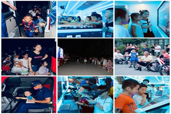 三是消防宣传车进社区点亮LED屏,开放参观互动宣传活动。为全面普及群众消防安全知识,进一步推动社会化消防宣传工作,宣传人员结合LED电子显示屏宣传具有形象直观、传播速度快、传播效果好等特点,积极联合支队宣教中心利用宣传车,通过LED电子显示屏开展消防安全知识宣传工作,滚动播放消防安全知识、自救逃生知识以及火灾案例,同时组织群众参观消防宣传车内消防科技,体验消防小游戏等,更好地吸引广大群众参与,使群众在潜移默化中学到消防知识,将消防理念深扎心间。