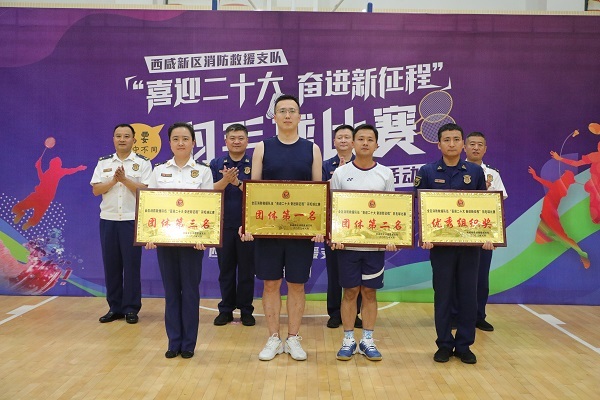 为进一步丰富活跃队伍文化生活,提升队伍凝聚力和战斗力,落实总队在西咸消防支队成立羽毛球骨干队伍的相关要求,8月26日,西咸消防支队举办“喜迎二十大 奋进新征程”羽毛球比赛,支队在家党委成员出席开、闭幕式。来自全区的7支代表队、73名运动员参加团体、男子单打、女子单打、男子双打、混合双打5个项目的角逐。