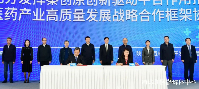 在签约环节,省药品监督管理局与西咸新区管委会签订战略合作框架协议,省中医药研究院制剂中心与盘龙制药有限公司签订合作协议,沣东新城管委会与诚域健康科技产业园签订合作协议。